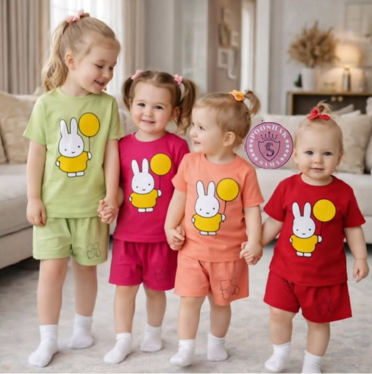 ست تی شرت شلوارک دخترانه خرگوش بادکنکی نخ پنبه