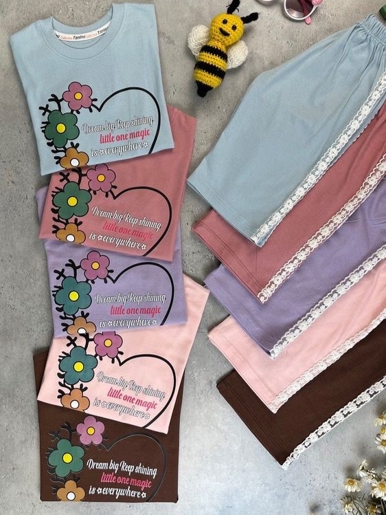 ست تی شرت شلوارک بچگانه قلب گل گلی گیپوردوزی